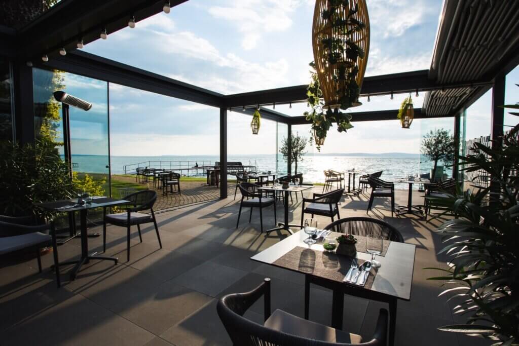 A hotel éttermében szezonális alapanyagokból készült fogások várják a vendégeket, a vacsora után pedig a terasz vagy a stég kiváló helyszín a kötetlen beszélgetésekhez.